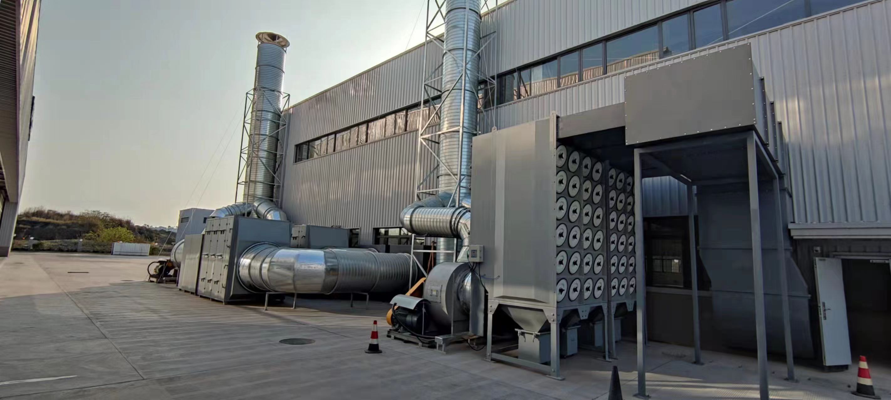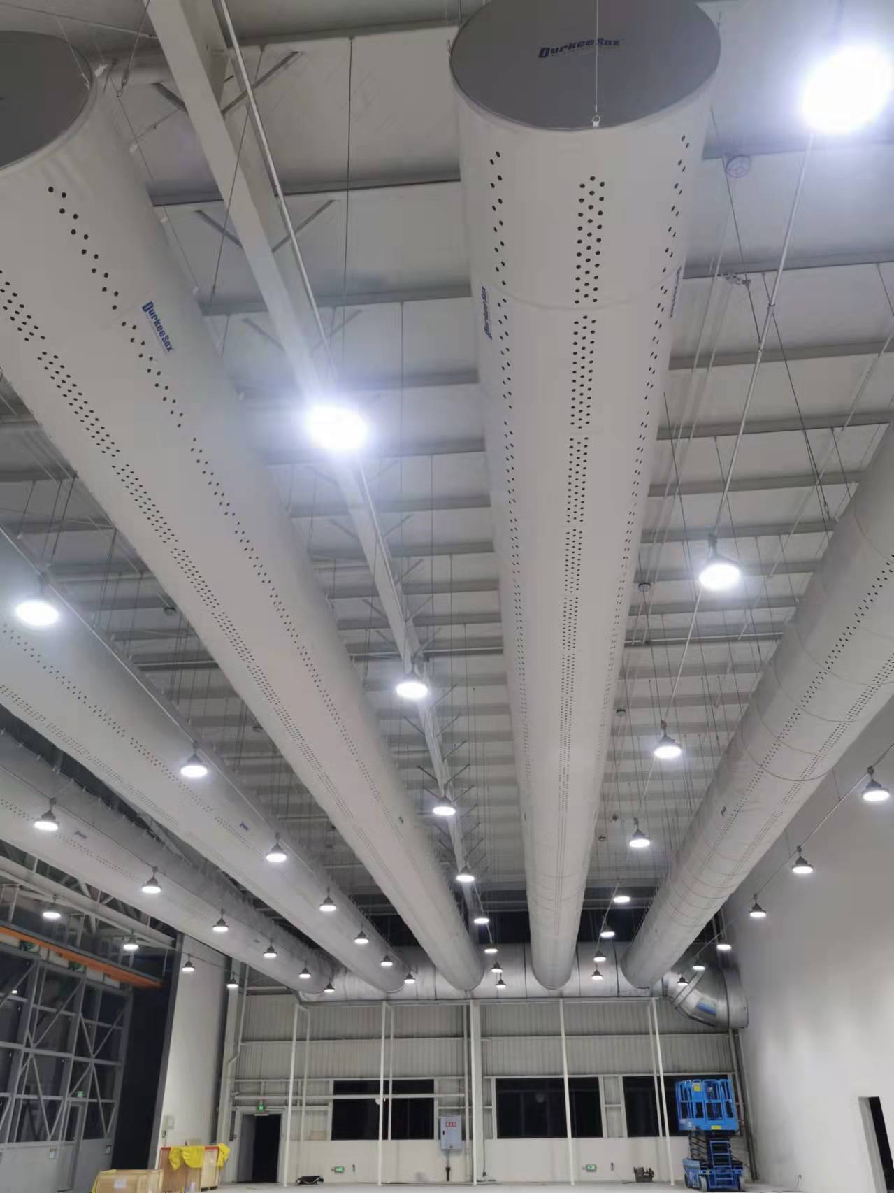 大型无人机整机喷漆机库设备,配套恒温恒湿空调系统,废气处理系统,采用轻质纤维送风管,满足大跨度整机喷涂需求。